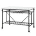 Give off a light and airy feel to a compact cooking space. The Mera Kitchen Island features a artificial stone top paired with a metal slatted shelves, creating a sleek, timeless silhouette that bring your kitchen an open feel. Bottle rack and wine glass storages keep your glassware and collection within reach. Use this stylish yet functional addition to complete your kitchen decor.
