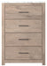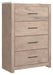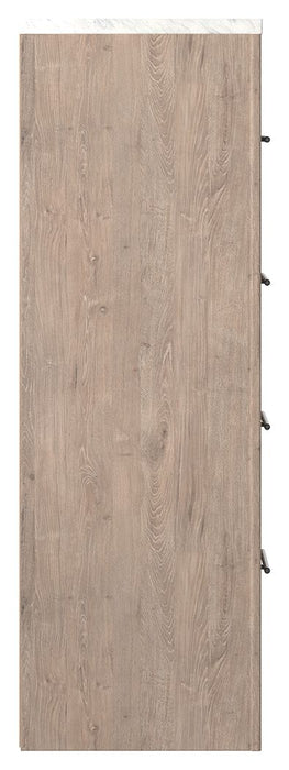 Cool, clean and casually modern. This chest’s light natural finish and faux Calcutta marble top set the tone for your calming sanctuary. Large linear pulls add dimension and authenticity. Four smooth-gliding drawers neatly accommodate your wardrobe needs.