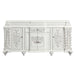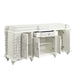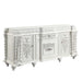 Sophisticated luxury radiates beautifully in the Vanaheim Dining Room Collection. Fabulous floral design with gorgeous details in each piece makes the collection classical and timeless. Antique white finish gives the surface an alluring feel and elegant touch. A clear glass dining table top allows light to filter into and through the whole table, enhancing the collection's overall design. Upholstery side chairs feature elaborate button-tufted design for adding extra style and comfort to the collection. This extremely extravagant style will make any ordinary dining room appear much more unique.