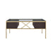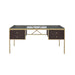 The industrial and classic design of the Yumia desk creates a spacious work area. The drawers maximize your space and your options in classic style, while keeping all your essentials neatly and safely tucked away. The gold finish and tempered glass top, add a different look to any work space.