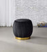 Assembled, Backless Round Ottoman (NO Storage) • Fully Padded Seat: Velvet • Armless • Wooden Inner Frame • Metal Round Base.